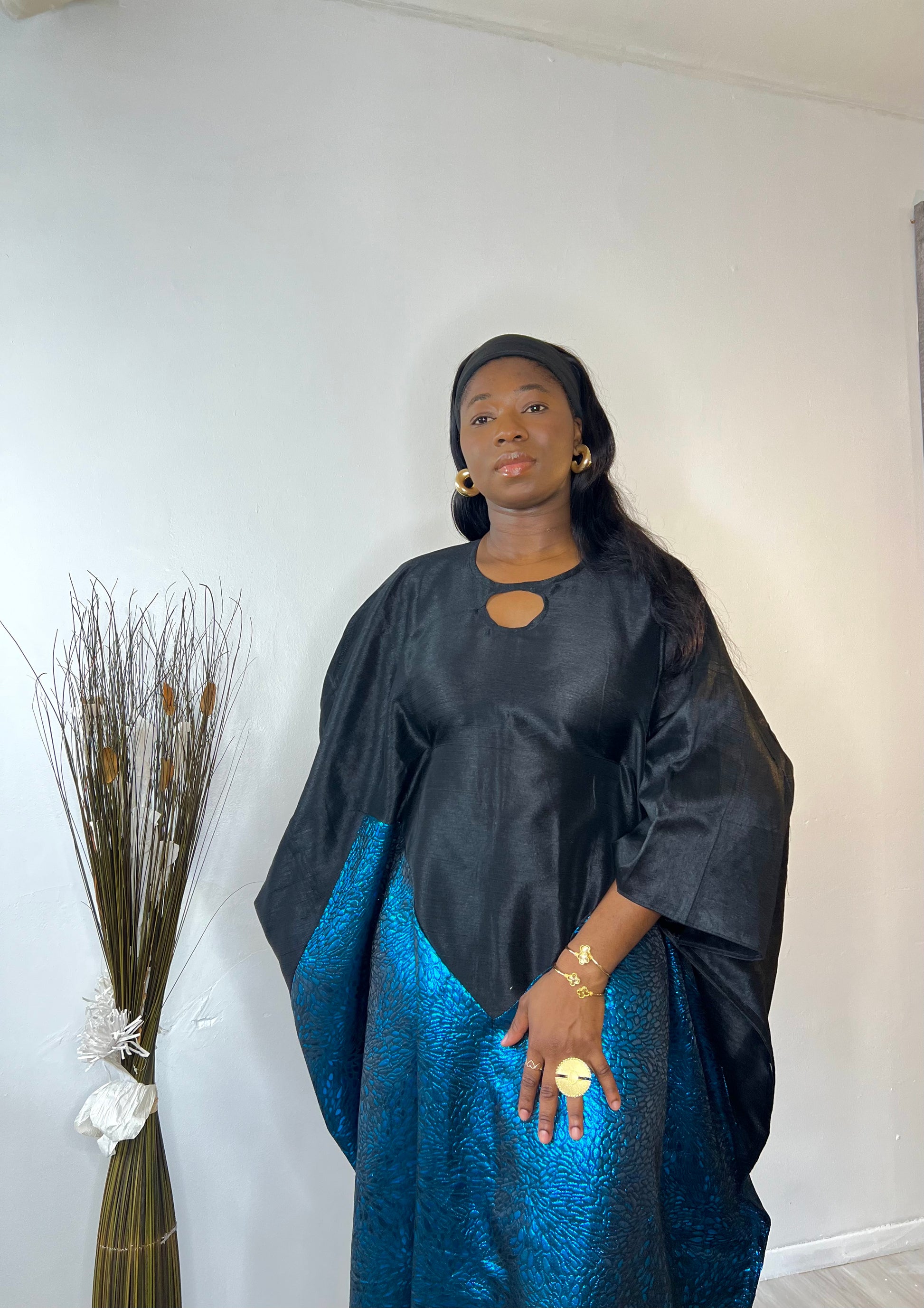 The "AMIRA DRESS" is an exquisite piece that exudes confidence and grace. This dress captivates with its adjustable fit, achieved through thoughtfully placed inner ties. Can be style in 3 different way with 4 inner ties Perfect for making a powerful statement with a blend of tradition and contemporary style.