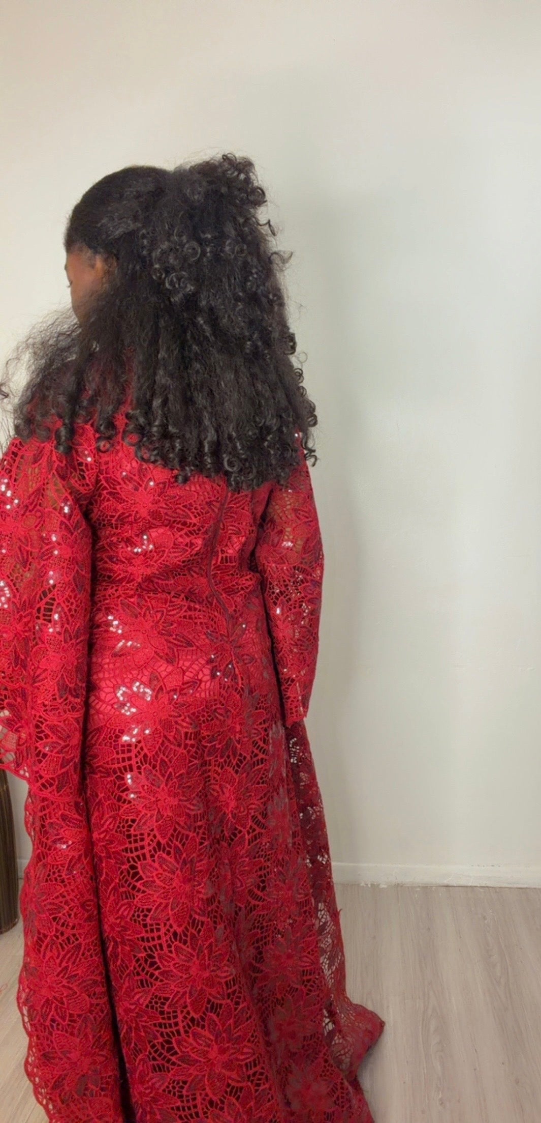 Crafted from HKG organza appliqué, a premium brodery fabric featuring a new and exclusive design, this set is made for elegance and celebration. The high-quality embroidery and sheer organza details give the dress a rich, elevated look.